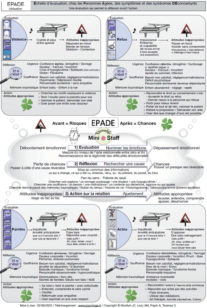 À la suite d’une erreur, l’Échelle d’évaluation, chez les personnes âgées, des symptômes et des syndromes déconcertants (EPADE) publiée en annexe de l’éditorial de Jean-Claude Monfort, Anne-Marie Lezy et Annie Papin du mois de mai 2025 (Rev Geriatr 2025 ; 50 : 259-65) a été mal reproduite. Voici la version exacte (accessible également sur le site https://www.psychoge.fr).